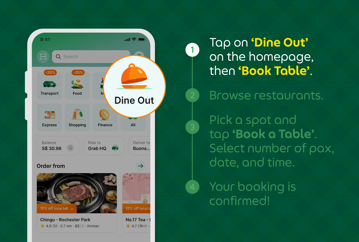 Here are the steps to enjoy the convenience of Grab Dine Out Book a Table feature: