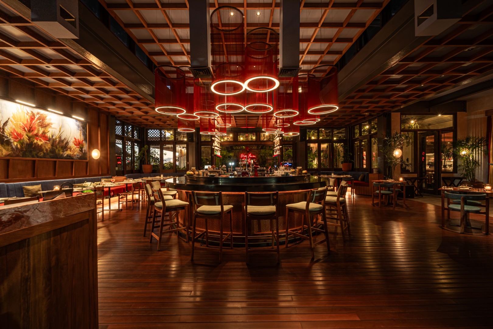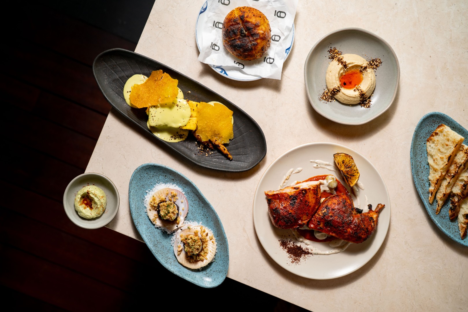 Sazón operates as a multi-format venue, combining its main dining area, Chef’s Counter, and bar within an open-air setting designed for both casual and structured dining. Open Wednesday to Monday from 6 PM to midnight, the restaurant continues to develop its identity through a combination of Mediterranean flavours, fire-based cooking, and shared dining formats.
